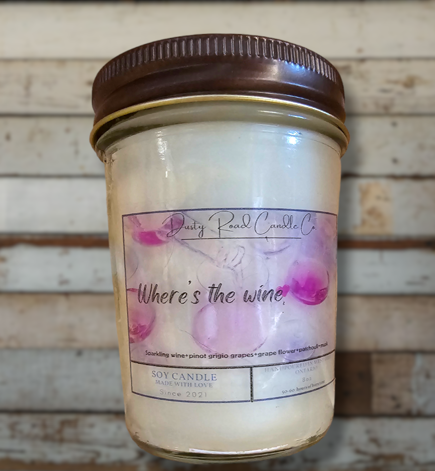 Our 8oz soy candles have a burn time of 50-60 hours. All of our candles are hand poured in small batches in our cozy little shop.